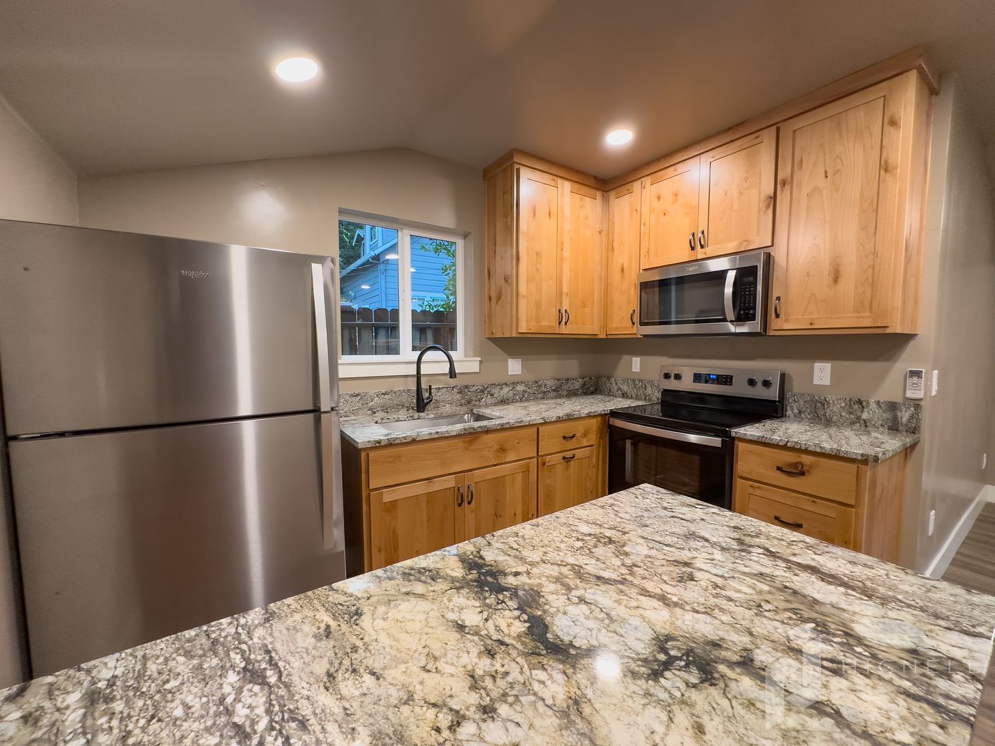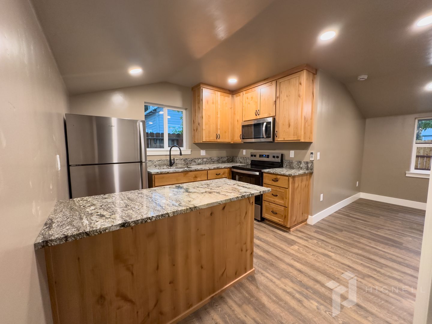 Discover this modern studio in Chico, CA featuring newer construction and thoughtful finishes throughout. The open layout showcases beautiful custom cabinets, granite countertops, and newer appliances, while solid surface flooring provides easy maintenance. In-unit washer/dryer adds convenience, and utilities are simplified with water and garbage service included. Front yard care is provided, allowing you to enjoy the exterior without extra upkeep. This studio offers a low-maintenance, well-appointed living space in a recent build.
