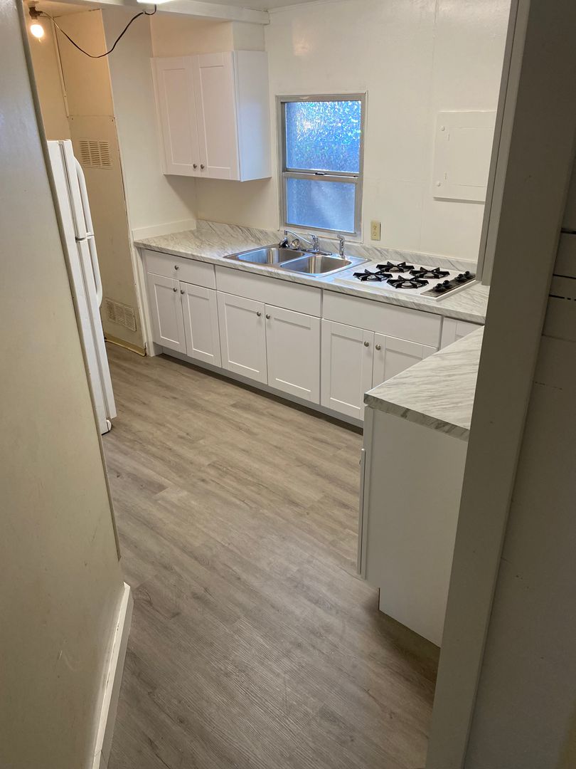 This charming 2-bedroom, 1-bathroom apartment has been newly remodeled, featuring a stove, fridge, shared yard with a shed, and wall heat/AC for your comfort.