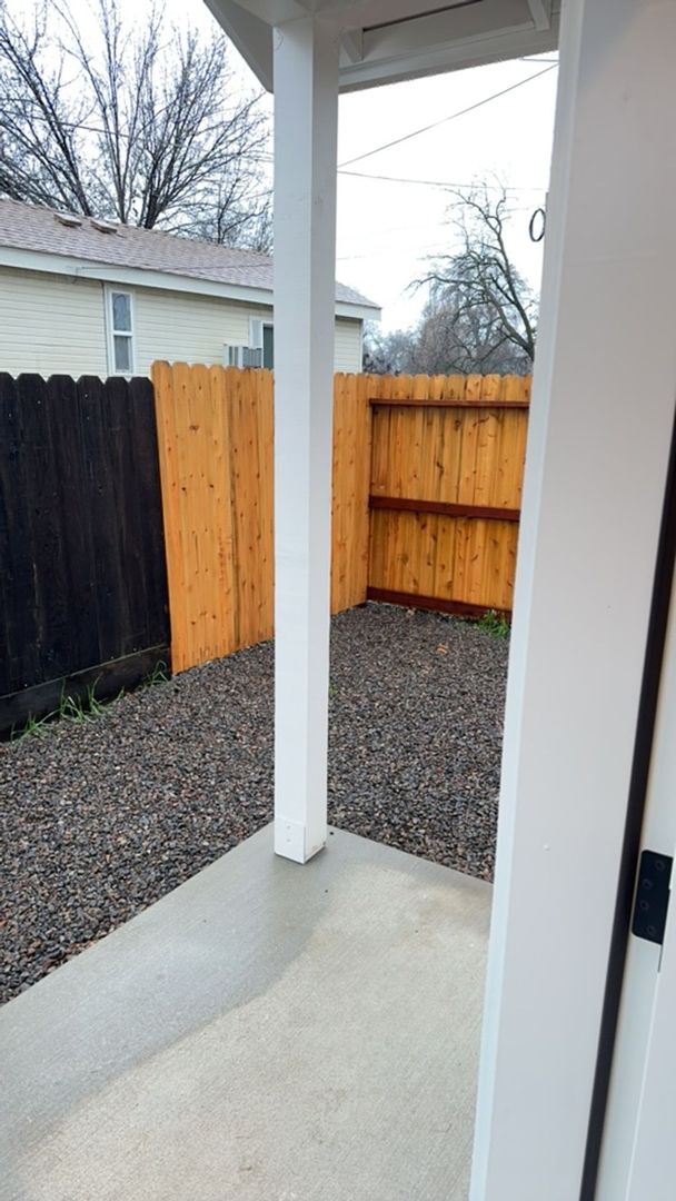 Welcome to this brand-new, charming house located in the vibrant city of Chico, CA. This stunning property boasts two spacious bedrooms and a modern, fully-equipped bathroom. The kitchen is a chef's dream, complete with a stove and dishwasher, and quartz countertopsmaking meal prep and clean-up a breeze. The apartment also includes a washer and dryer, adding convenience to your daily routine. The solid surface flooring throughout the home adds a touch of elegance and is easy to maintain. Fence back yard. One of the standout features of this property is the solar system, which produces about 270kw hours a month, translating to a significant reduction in your utility bills, approximately $100-$130 monthly. Experience the perfect blend of comfort, style, and sustainability.