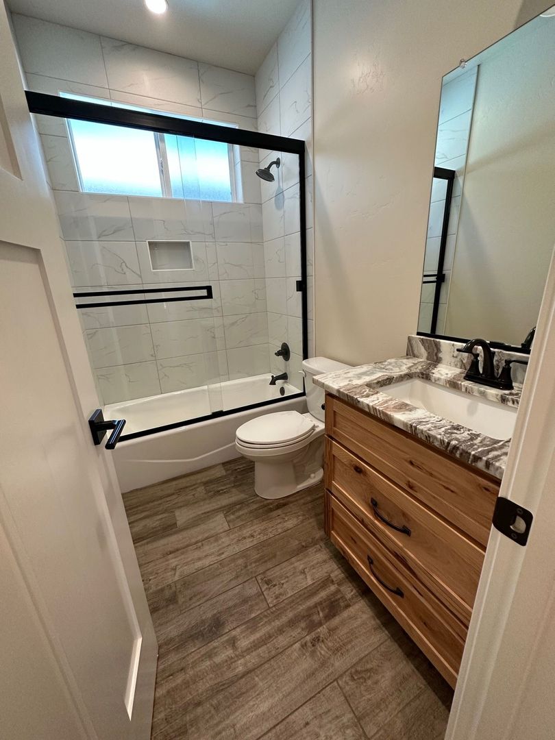With its newer construction, you can expect a contemporary design that will impress. The kitchen boasts elegant quartz countertops, complemented by beautiful custom cabinets that provide ample storage space. The tile floors and granite countertops add a touch of sophistication to the overall aesthetic.